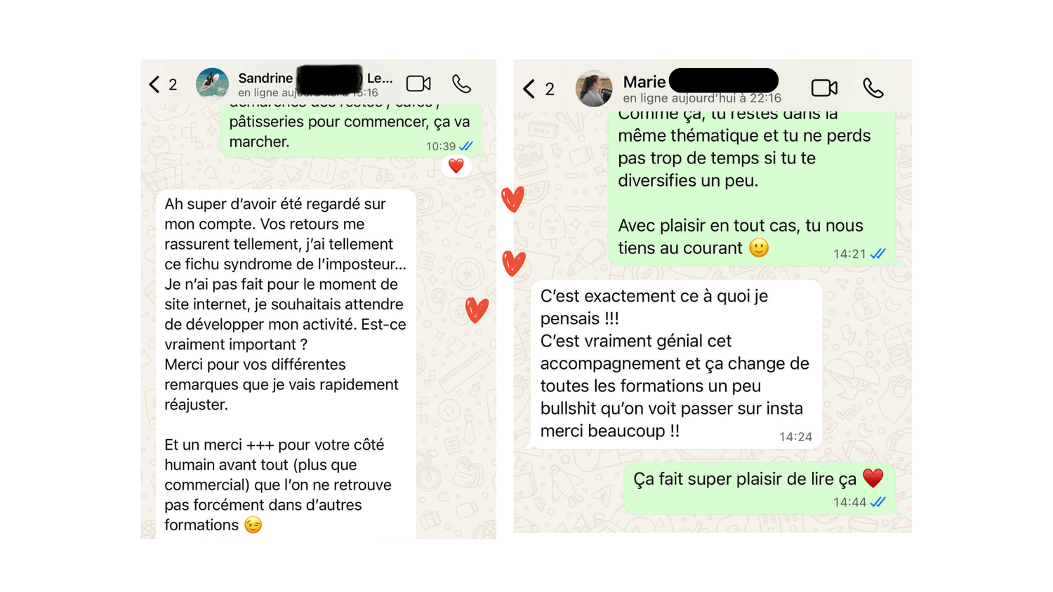 Pendant 3 mois après ton inscription, tu as accès à notre WhatsApp privé.